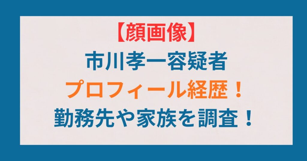 【顔画像】市川孝一容疑者プロフィール経歴!勤務先や家族を調査!