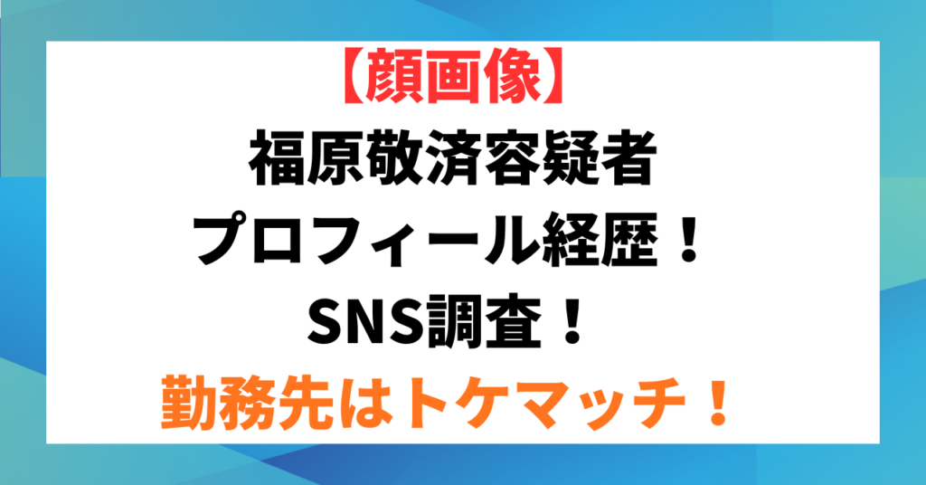 福原敬済容疑者プロフィール経歴!SNS調査!勤務先はトケマッチ!
