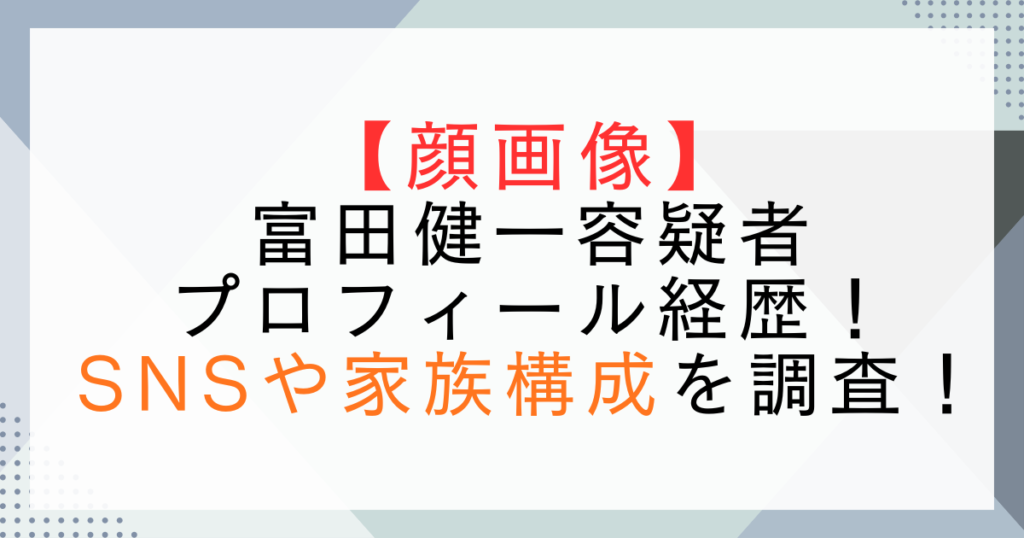 【顔画像】富田健一容疑者プロフィール経歴!SNSや家族構成を調査!