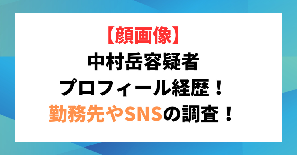 【顔画像】中村岳容疑者プロフィール経歴!勤務先やSNSを調査!