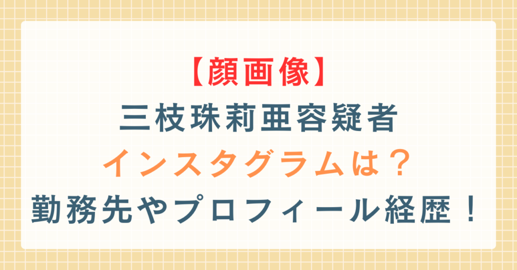 【顔画像】三枝珠莉亜容疑者インスタグラムは?勤務先やプロフ経歴!
