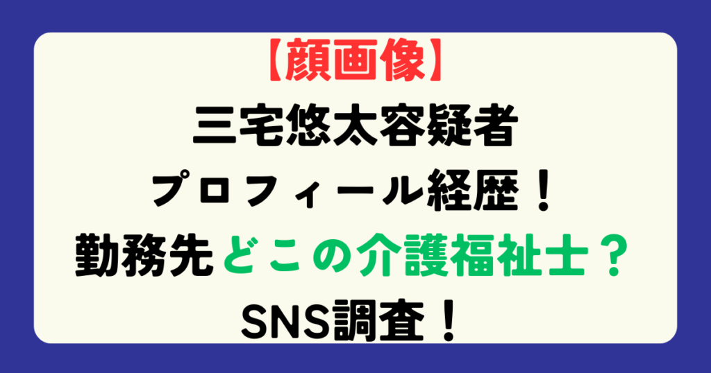 【顔画像】三宅悠太容疑者プロフ!勤務先どこの介護福祉士?SNSは?