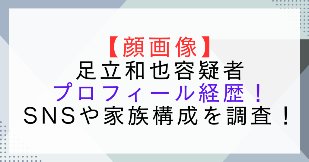 【顔画像】足立和也容疑者プロフィール経歴!SNSや家族構成を調査!