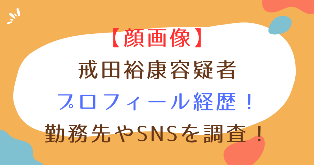 【顔画像】戒田裕康容疑者プロフィール経歴!勤務先やSNSを調査!