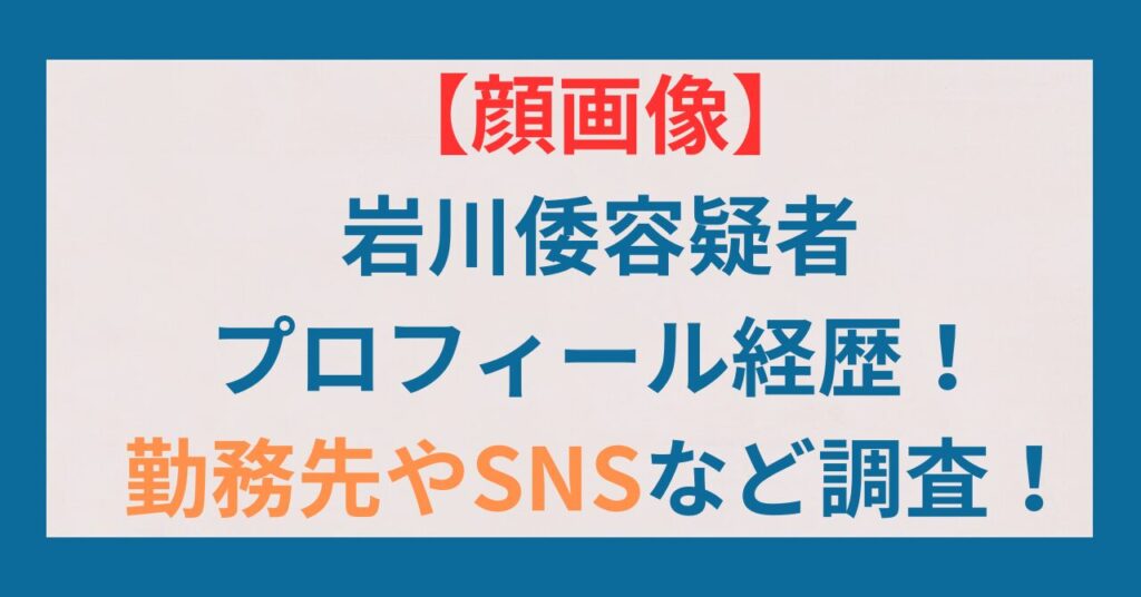 【顔画像】岩川倭容疑者プロフィール経歴!勤務先やSNSを調査!