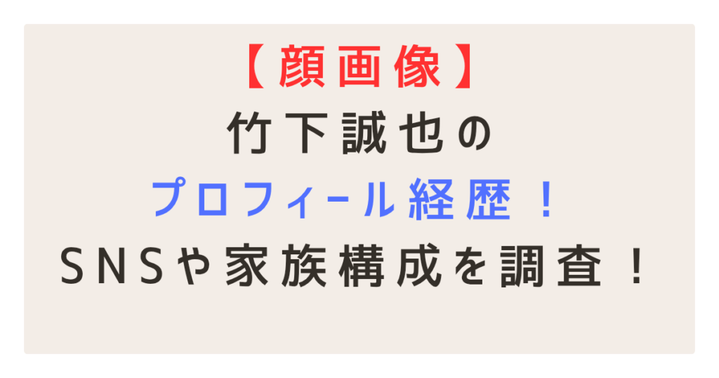 【顔画像】竹下誠也のプロフィール経歴!SNSや家族構成を調査!