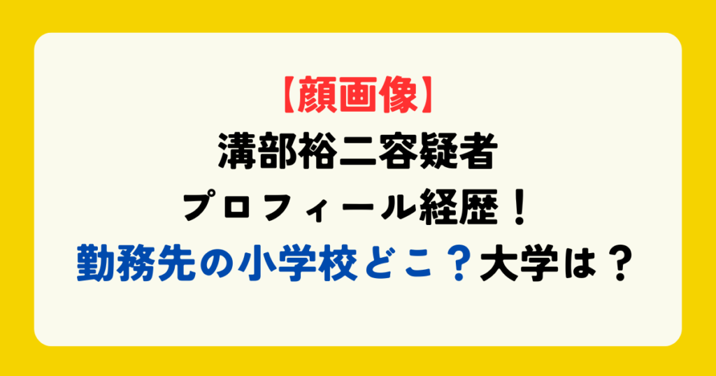 【顔画像】溝部裕二容疑者プロフ経歴!勤務先の小学校どこ?大学は?