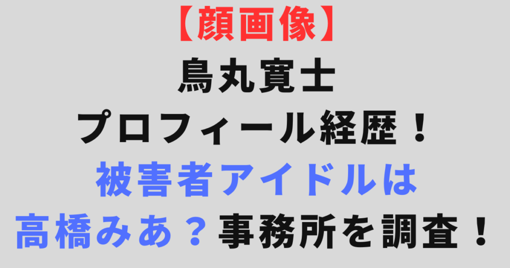 【顔画像】鳥丸寛士プロフ!被害者アイドルは高橋みあ?事務所調査!