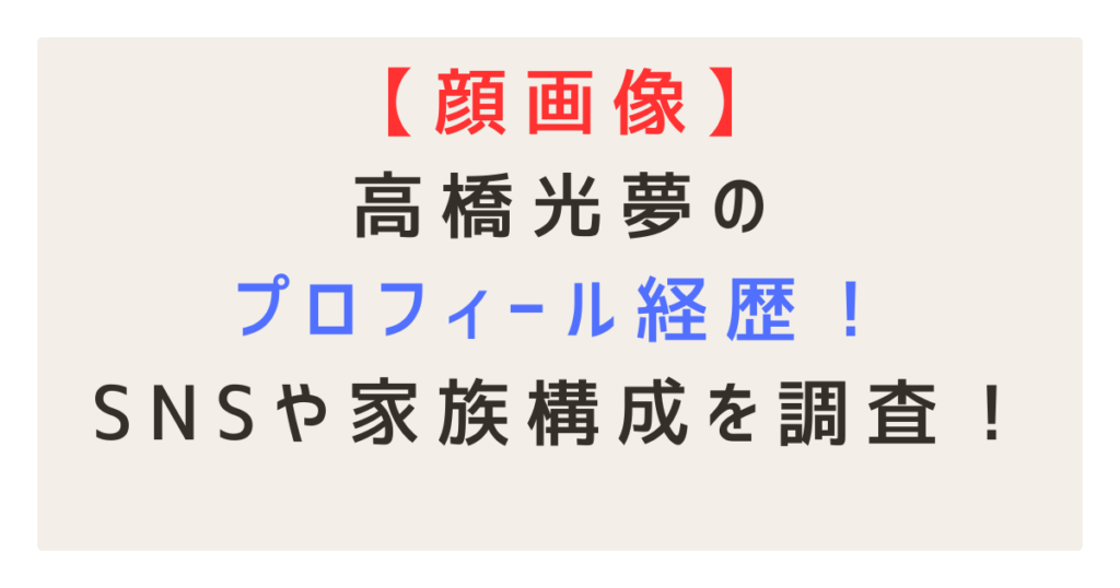 【顔画像】高橋光夢のプロフィール経歴!SNSや家族構成を調査!