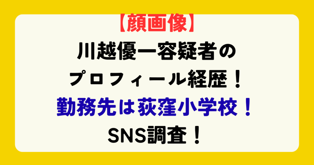 【顔画像】川越優一容疑者プロフ!勤務先は荻窪小学校!SNS調査!