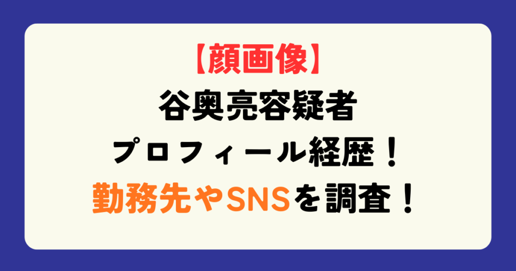 【顔画像】谷奥亮容疑者プロフィール経歴!勤務先やSNSを調査!