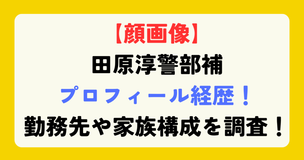 【顔画像】田原淳警部補プロフィール経歴!勤務先や家族構成を調査!