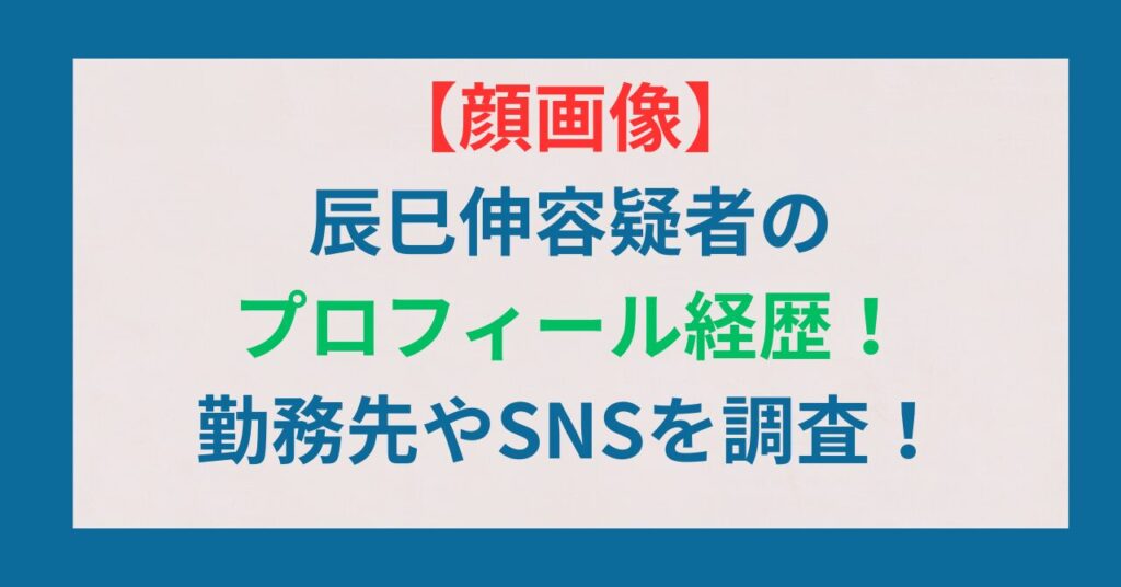 【顔画像】辰巳伸容疑者のプロフィール経歴!勤務先やSNSを調査!