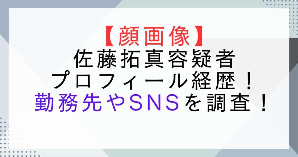 【顔画像】佐藤拓真容疑者プロフィール経歴!勤務先やSNSを調査!