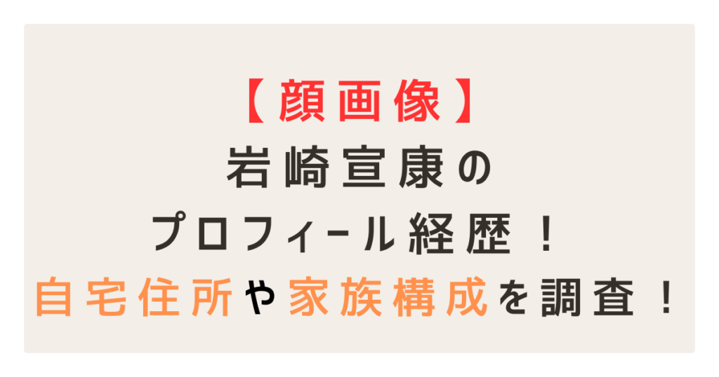 【顔画像】岩崎宣康のプロフィール経歴!自宅住所や家族構成を調査!