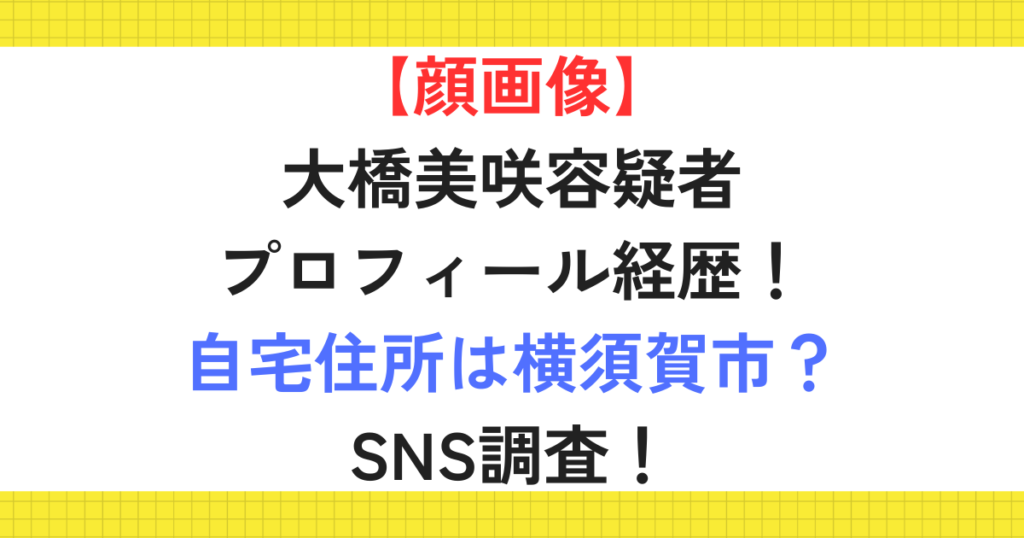 【顔画像】大橋美咲容疑者プロフ!自宅住所は横須賀市!SNS調査!
