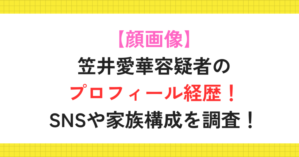 【顔画像】笠井愛華容疑者プロフィール経歴!SNSや家族を調査!