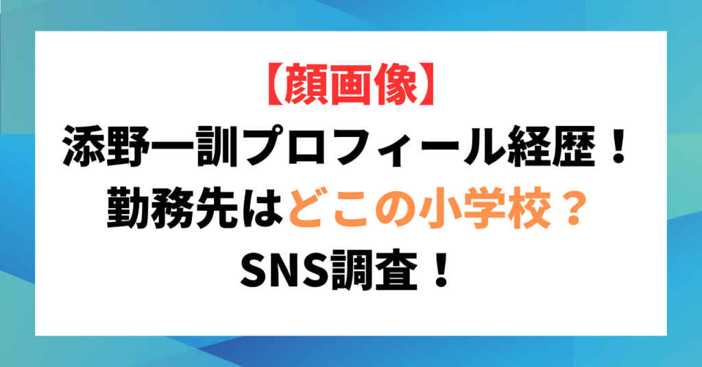 【顔画像】添野一訓プロフ経歴!勤務先はどこの小学校?SNS調査!