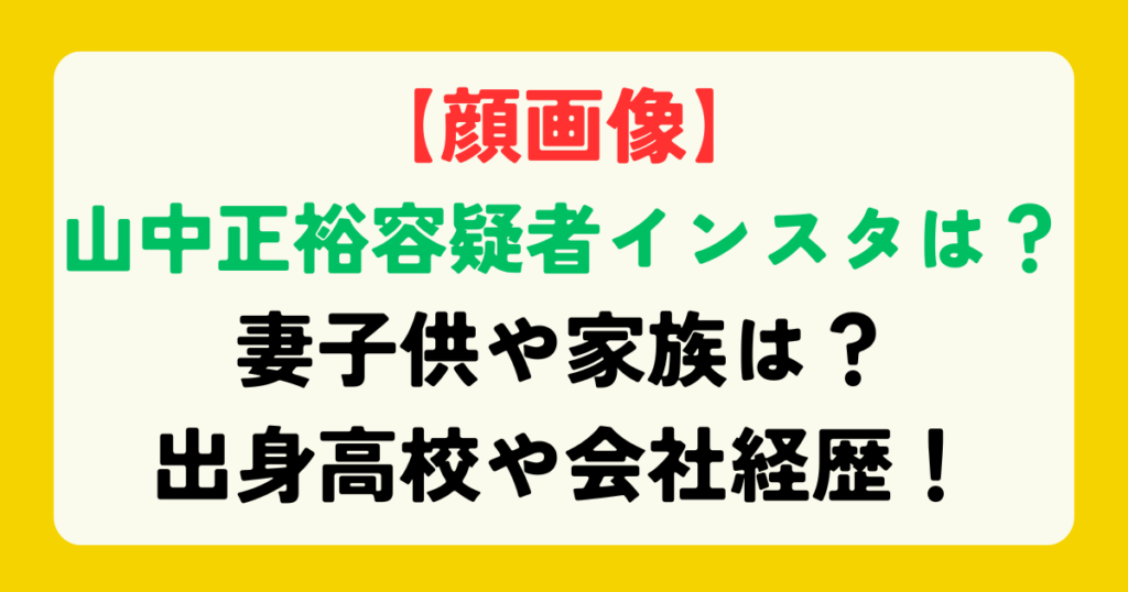 山中正裕容疑者インスタは?妻子供や家族は?出身高校や会社経歴!