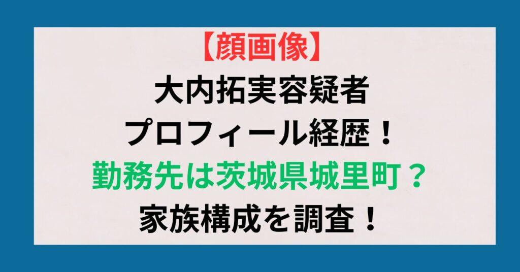 【顔画像】大内拓実容疑者プロフ!勤務先は茨城県城里町?家族調査!