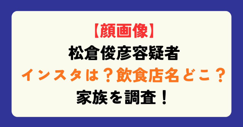 【顔画像】松倉俊彦容疑者インスタは?飲食店名どこ?家族を調査!