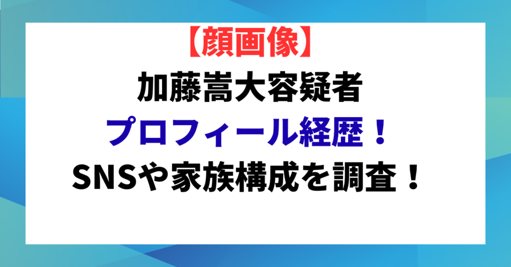 【顔画像】加藤嵩大容疑者プロフィール経歴!SNSや家族構成を調査!
