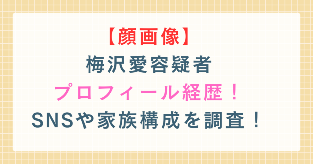 【顔画像】梅沢愛容疑者プロフィール経歴!SNSや家族構成を調査!