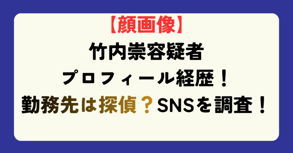 【顔画像】竹内崇容疑者プロフィール経歴!勤務先は探偵?SNS調査!