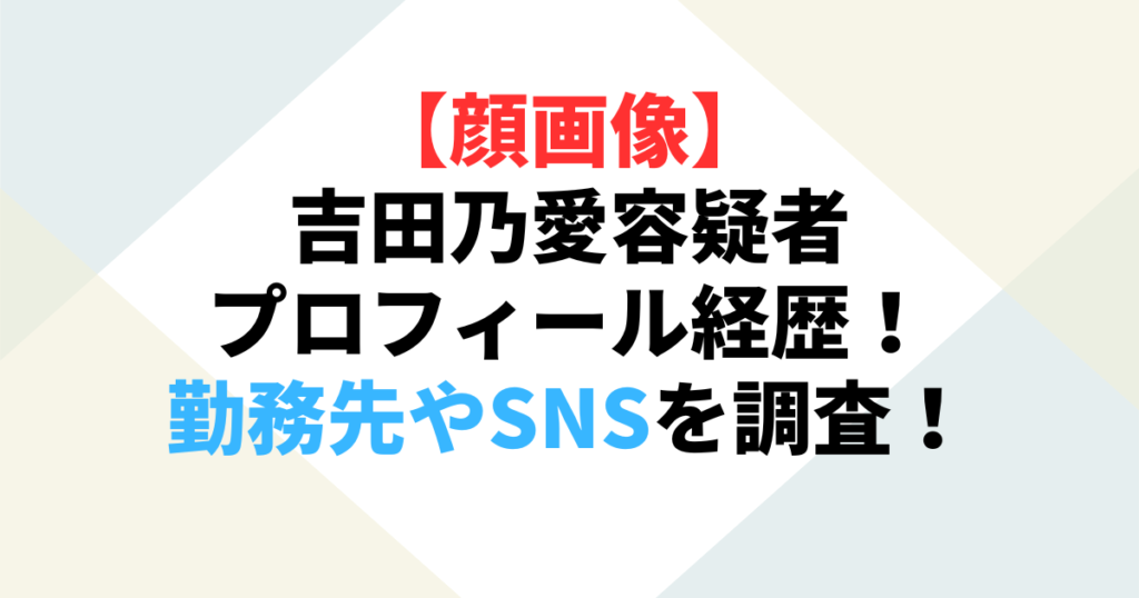 【顔画像】吉田乃愛容疑者プロフィール経歴!勤務先やSNSを調査!