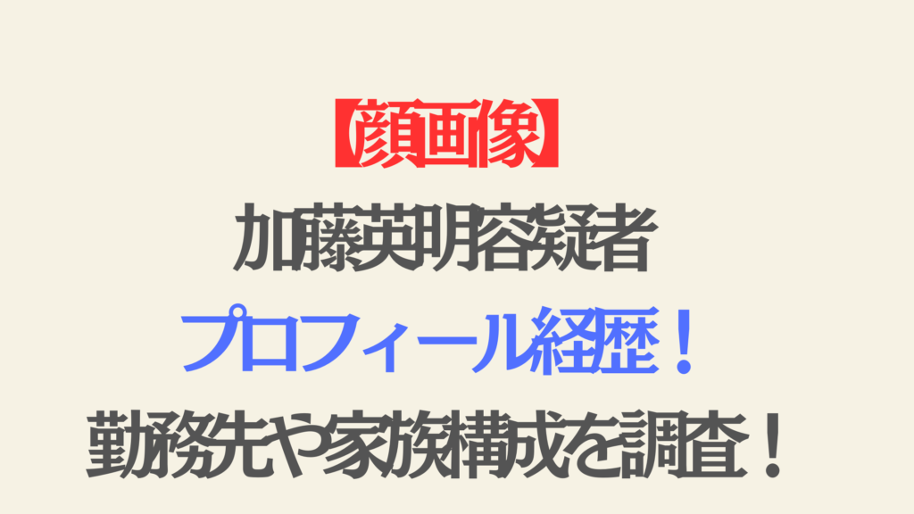 【顔画像】加藤英明容疑者プロフィール経歴!勤務先や家族を調査!