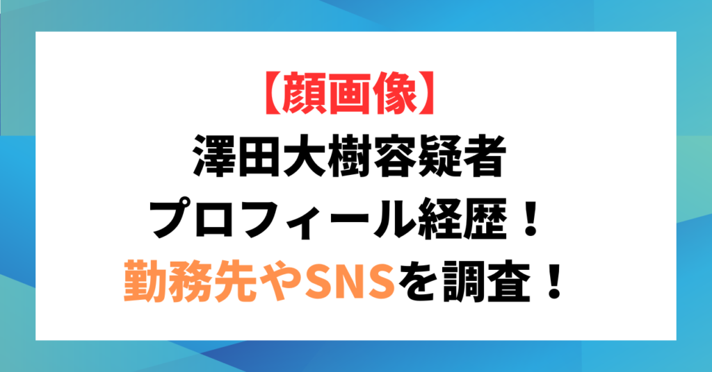 【顔画像】澤田大樹容疑者プロフィール経歴!勤務先やSNSを調査!