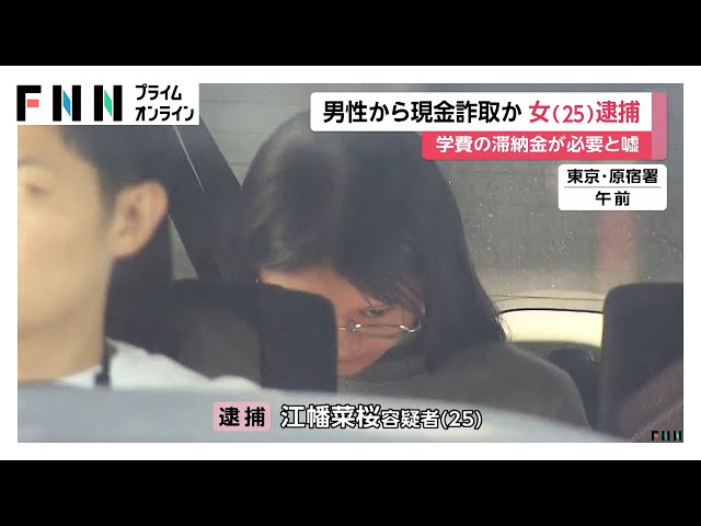 2025年9月24日に大金を騙し取った疑いで、東京都中野区に住む職業不詳:江幡菜桜容疑者(25)が逮捕されました。