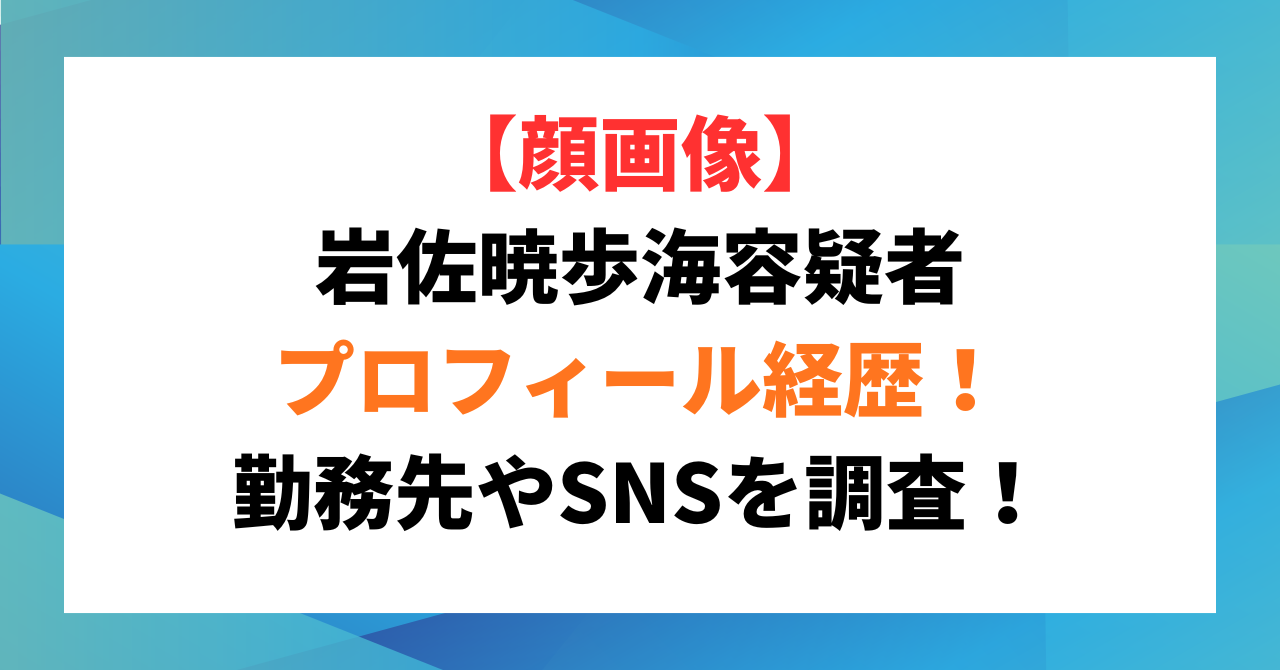 【顔画像】岩佐暁歩海容疑者のプロフィール経歴!