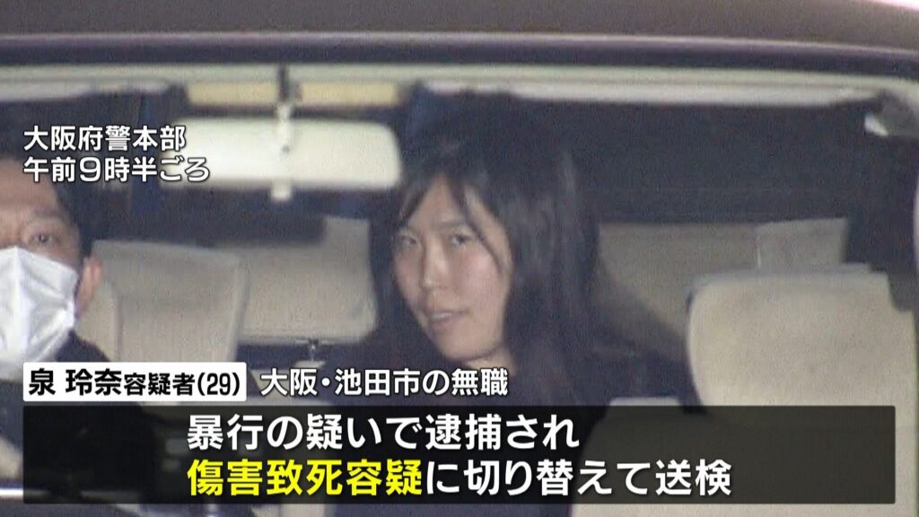 2025年11月8日に暴行の容疑で、大阪府池田市の集合住宅に住む母親の無職:泉玲奈容疑者(29)=同市=が逮捕されました。