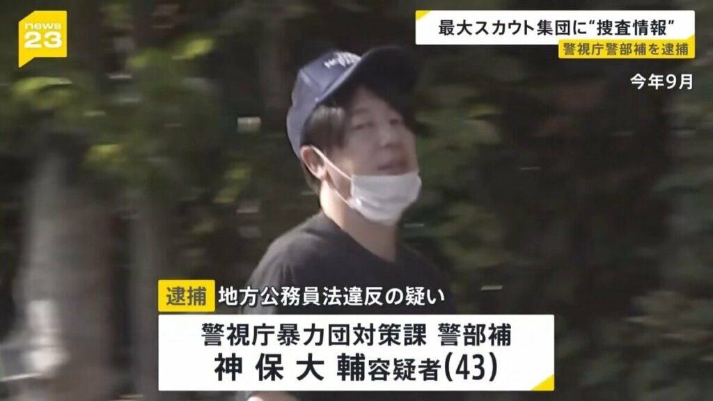 2025年11月12日に地方公務員法(守秘義務)違反容疑で、警視庁暴力団対策課警部補の神保大輔容疑者(43)=東京都板橋区前野町=が逮捕。
