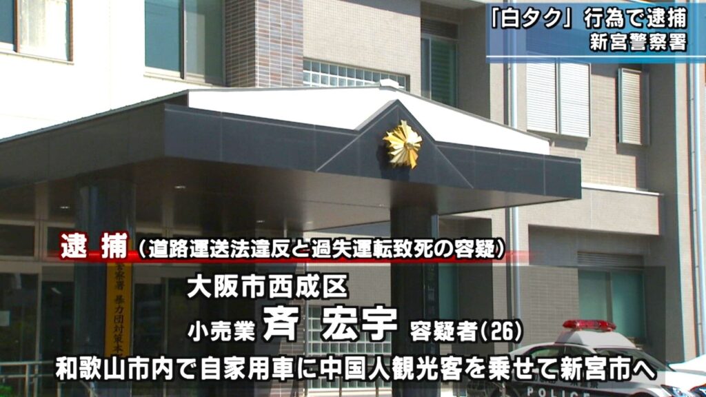 斉容疑者はタクシーの営業許可を受けず、「白タク」違法で有償で観光客を運んでいたと判明。